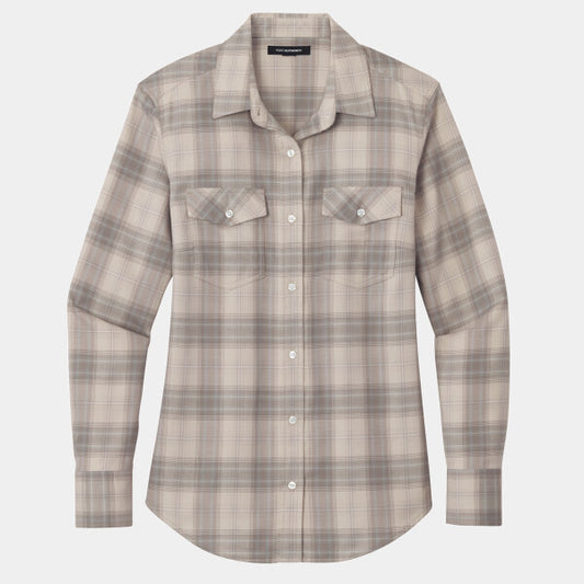LADIES LONG SLEEVE OMBRE PLAID SHIRT